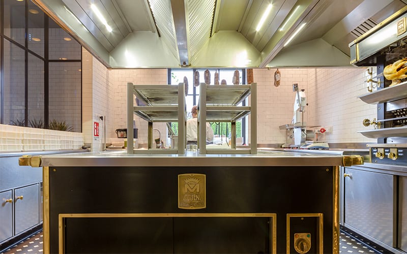 Les cuisines ouvertes de Campamac abritent fièrement 2 incroyables fourneaux et une rôtissoire Molteni, dans un environnement incroyable.