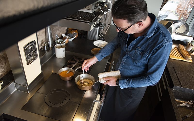 Gaspard in Barvaux-sur-Ourthe. He exudes passion for cooking, but his second love next to his wife Véronique Delbar? His Molteni gas stove!