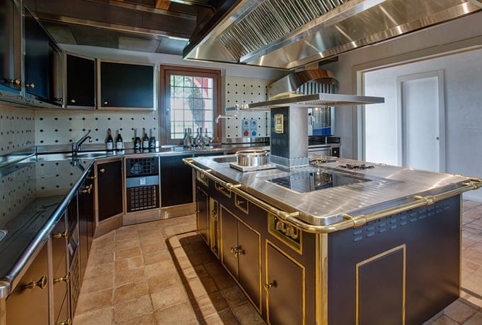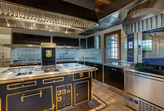 Le Monde in Italy is a new generation winery, both in terms of technology and sustainability. The contrast tradition-technology is highlighted by the beautiful Molteni cooking island, shiny black enamelled with brass finishings. Unique and incomparable.