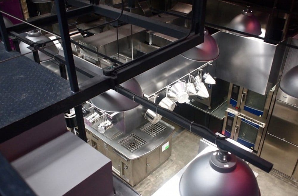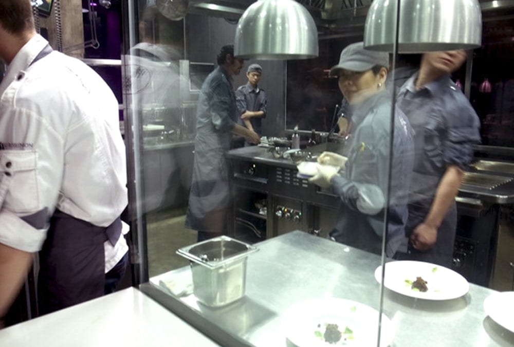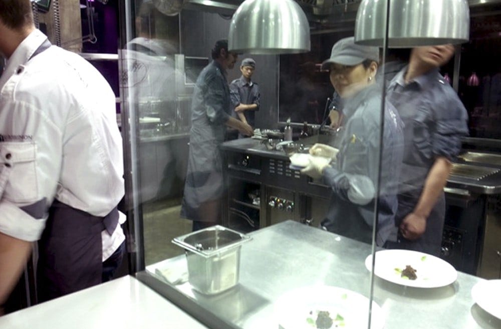 Ultraviolet, a 10-seat multi-sensorial “theater restaurant” offering a world-exclusive dining concept. Lights and sounds accompany the incomparable 20-course meal prepared on the beautiful stainless steel Molteni cooking suite.