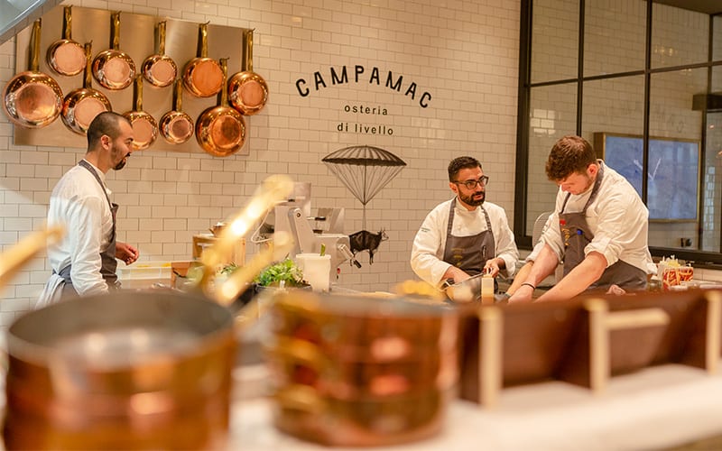Campamac 是一家独一无二的小酒馆,位于皮埃蒙特地区的朗赫地区,是巴巴莱斯科葡萄酒和著名的阿尔巴松露的产地。两位商业伙伴——经理Paolo Dalla Mora和行政总厨 Maurilio Garola将Campamac定义为“高级”小酒馆。 Campamac 是一种方言,意思是“大胆尝试”,总厨Maurilio Garola在厨房里用这个词来鼓励他的团队,尤其在服务过程中肾上腺素升高的时候。 Campamac独特的开放式厨房是真正主角,环境令人震撼,以拥有一套产自法国Molteni烤肉器和两套的顶级Molteni一体炉而引以为豪。